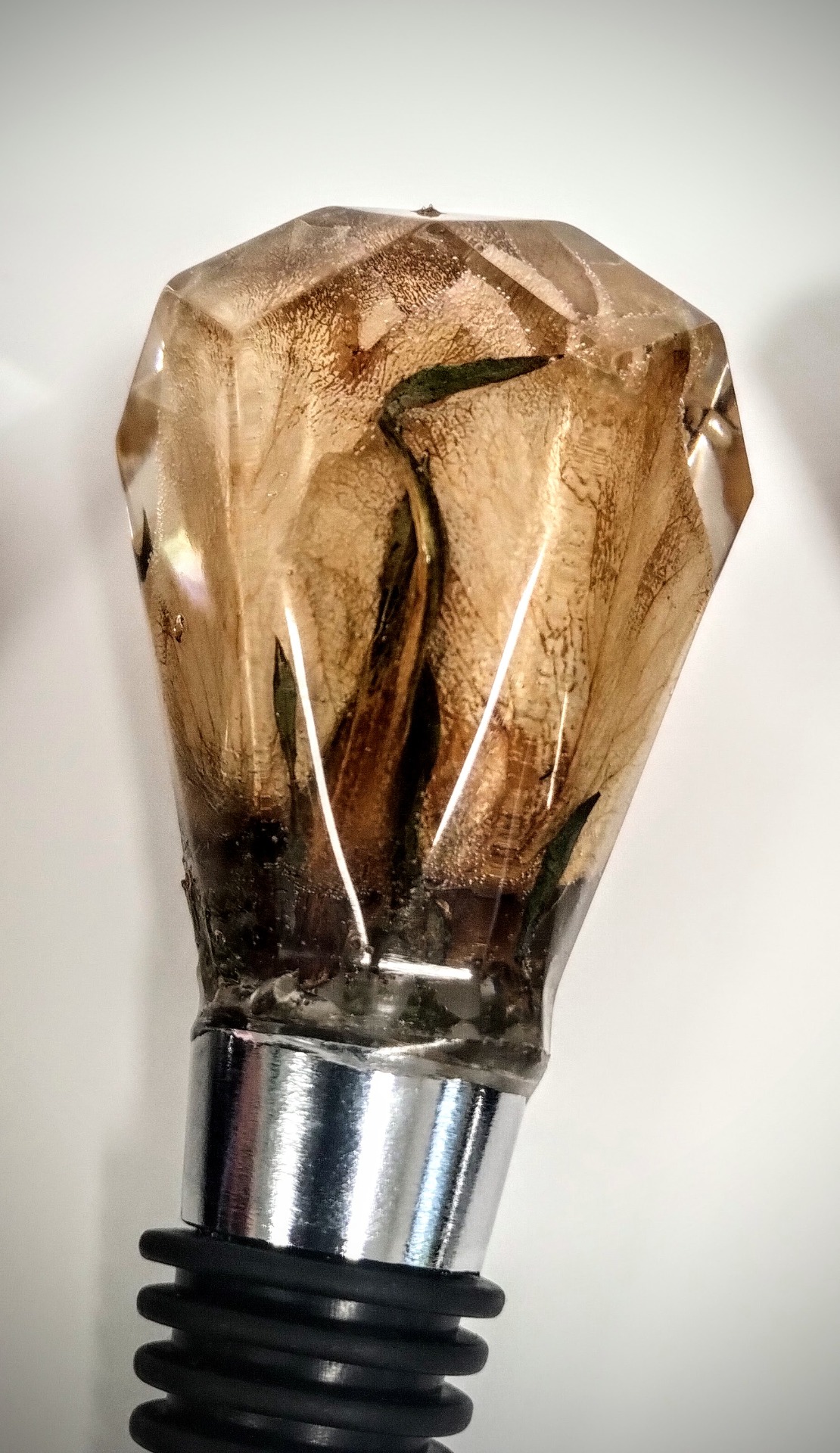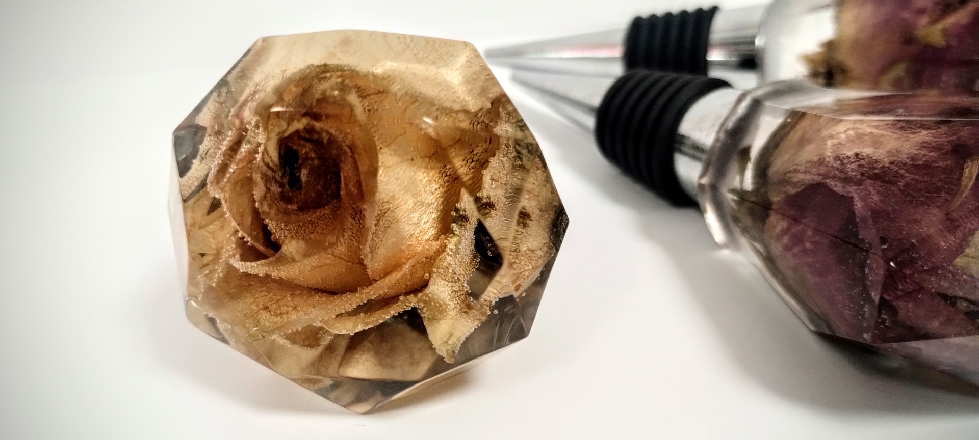 Krása růže navždy uchovaná v křišťálové pryskyřici.
