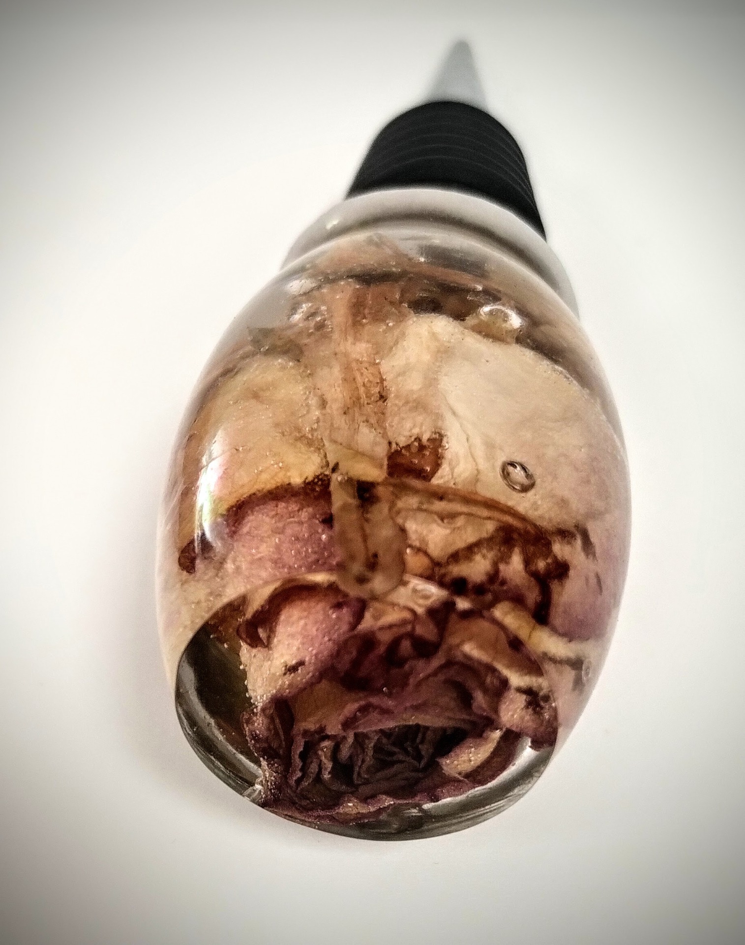 Krása růže navždy uchovaná v křišťálové pryskyřici.